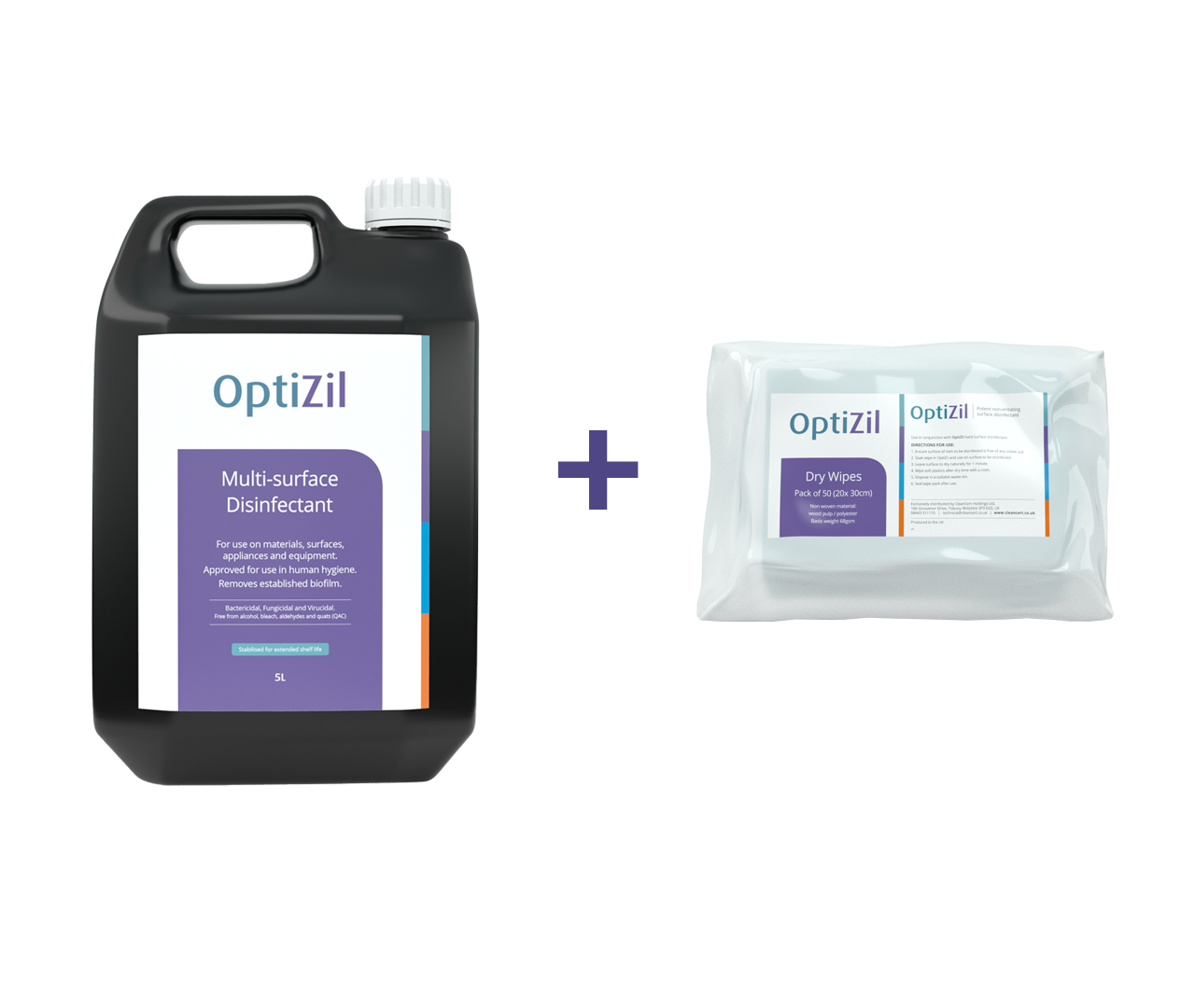 OptiZil contains a naturally occurring antimicrobial (HOCl) that is versatile, safe, fast acting and proven to kill dangerous viruses, bacteria and spores. It is an extremely effective alcohol-free clinical disinfectant, acting in less than one minute on hard and soft surfaces. It can also be used safely on human skin and for cold sterilisation (soaking) of alginates, dentures and impressions.